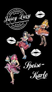 Die 3 verwenden regionale Kärntner Produkte und Zutaten: Mehl von Glanzer Mühlen – Spittal/Drau Freilandeier vom Hansbauer – Kötzing Wurstwaren vom Meisterfleischer Heitzmann – Seeboden Salate von Robitsch Obst & Gemüse – Brückl/Bad Kleinkirchheim Milchprodukte, Käse von Kärntner Milch – Spittal/Drau u.v.m. ... als Tochter einer italienisch-irischen Auswander- erfamilie in Boston aufgewachsen, hält es sie nicht länger in ihrer Heimat. Sie packt ihr sämtliches Hab und Gut ein, nimmt ihr eisern Erspartes und macht sich mit dem Schiff über den Atlantik auf, um die große, weite Welt mit ihrer Harley zu bereisen und die kulinarischen Wurzeln ihrer Eltern zu erkunden……. Ciao Roma – ciao Donatella! Kaum in Rom angekommen, der ersten Anlaufstation in Europa und die Heimatstadt ihrer Mum Ornella, lernt sie bei Vino rosso und Cacio e Pepe – ihrer Leibspeise - in einer Trattoria Donatella Dolce , die gelernte Patisseurin kennen. Schnell entdecken die beiden ihre gemeinsamen Leidenschaften, la dolce vita und die Gaumenfreuden des Lebens ... Von nun an unzertrennlich beschließen die beiden die weitere Reise zusammen fort zu setzen, um die lokalen Leckerbissen von good old Europe von nun an gemeinsam zu erschlemmen. Hello London – hello Molly! Die Reise mit der Harley geht weiter in die gastronomische Metropole Europas – London is calling! In einer Bar in Soho lernen die beiden die charmante, witzige Barista Molly Mocca kennen. Nach mehreren hausgerösteten Espressi und Digestivi beschließen die drei Mädels ihre Vorlieben und Träume von nun an zum Beruf zu machen – bereit für die kulinarische Rebellion ….. your soul food experience ….. Lucy schmeißt die Küche und sorgt für das leibliche Wohl – hausgemachte Pasta und unsere Mafiatorten aus der Pizzerei und unsere selbstgemachten Hausbrote und Ofenfladen aus der Brotschmiede ... Donatella, unsere süßeste Versuchung, hat die Zuckerecke, unsere Dolceria über – hausgemachtes italienisches Gelato, Freaky Shakes und Bubble Waffles sorgen für den richtigen Abgang! Für die richtigen Drinks & Weinbegleitung sorgt unsere Durstlöscherin Molly – Kaffeerösterei und Bar ist fest in ihrer Hand! Begleite die 3 Mädels quer durch das kulinarische Europa und auf andere schöne Flecken auf Gottes Erden! Viel Spaß, guten Appetit und Bussi wünschen euch LUCY & DONATELLA & MOLLY Unsere kleine Juicy Lucy, ...